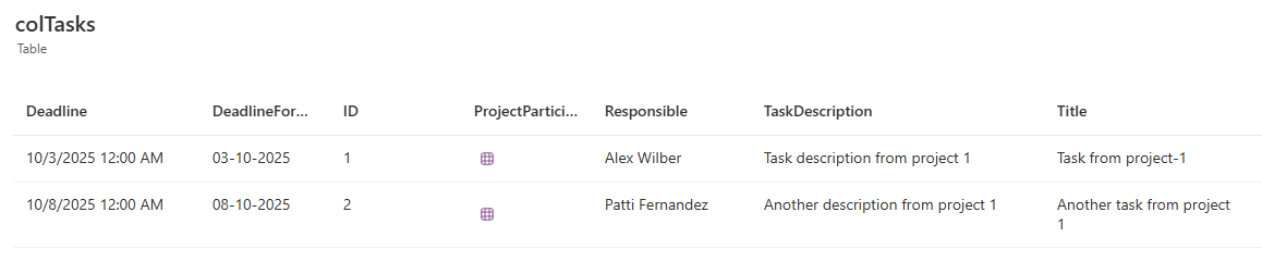 Notice how we are selecting the Email and Title from both Reponsible and ProjectParticipants
