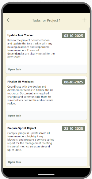 Now that we have all the tasks in a collection, we can show the tasks in a gallery view, like below