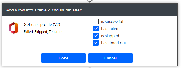 Select the 3 dots (…) and click configure run after and unselect is successful and select the other 3