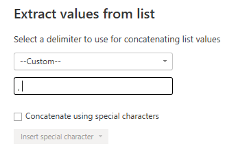 #"Extracted Values" = Table.TransformColumns(#"Added Custom1", {"ISO", each Text.Combine(List.Transform(_, Text.From), ", "), type text}),