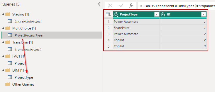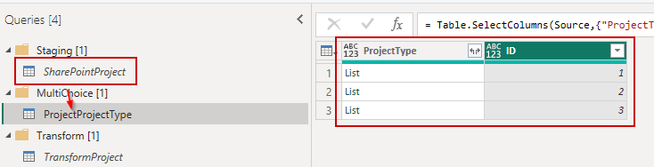 Either Remove or Choose columns so that we only have ID and ProjectType in our table.