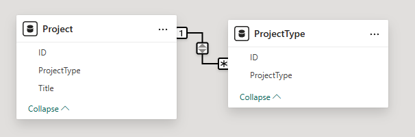 From the table called ProjectType insert the ProjectType column into a slicer visual