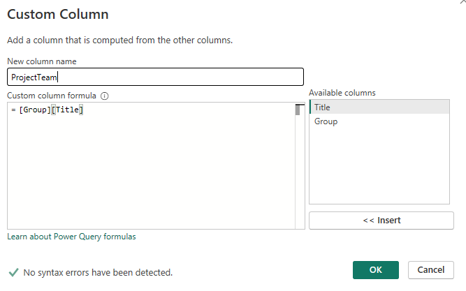 #"Removed Columns" = Table.RemoveColumns(#"Extracted Values1",{"Group"}),