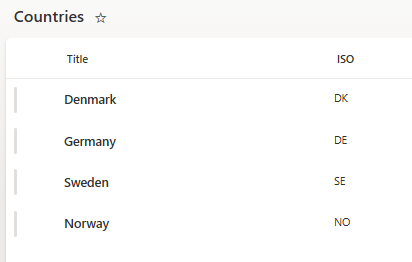 For this list we will also add ISO to the list, so that we can filter on both the country name and country ISO