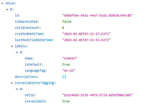 yourtenant.sharepoint.com/_api/v2.1/termStore/groups/106ee510-eeab-4492-9f86-14194ec48522/sets/81a3486d-5c55-4075-b77d-8d58f806cb03/children?$filter=labels/any(a: a/name eq 'Snakes')